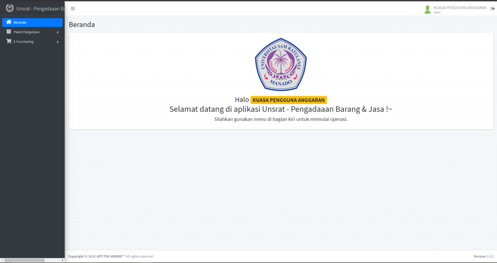 Panduan Aplikasi Sistem Informasi Pengadaan Barang Jasa UNSRAT